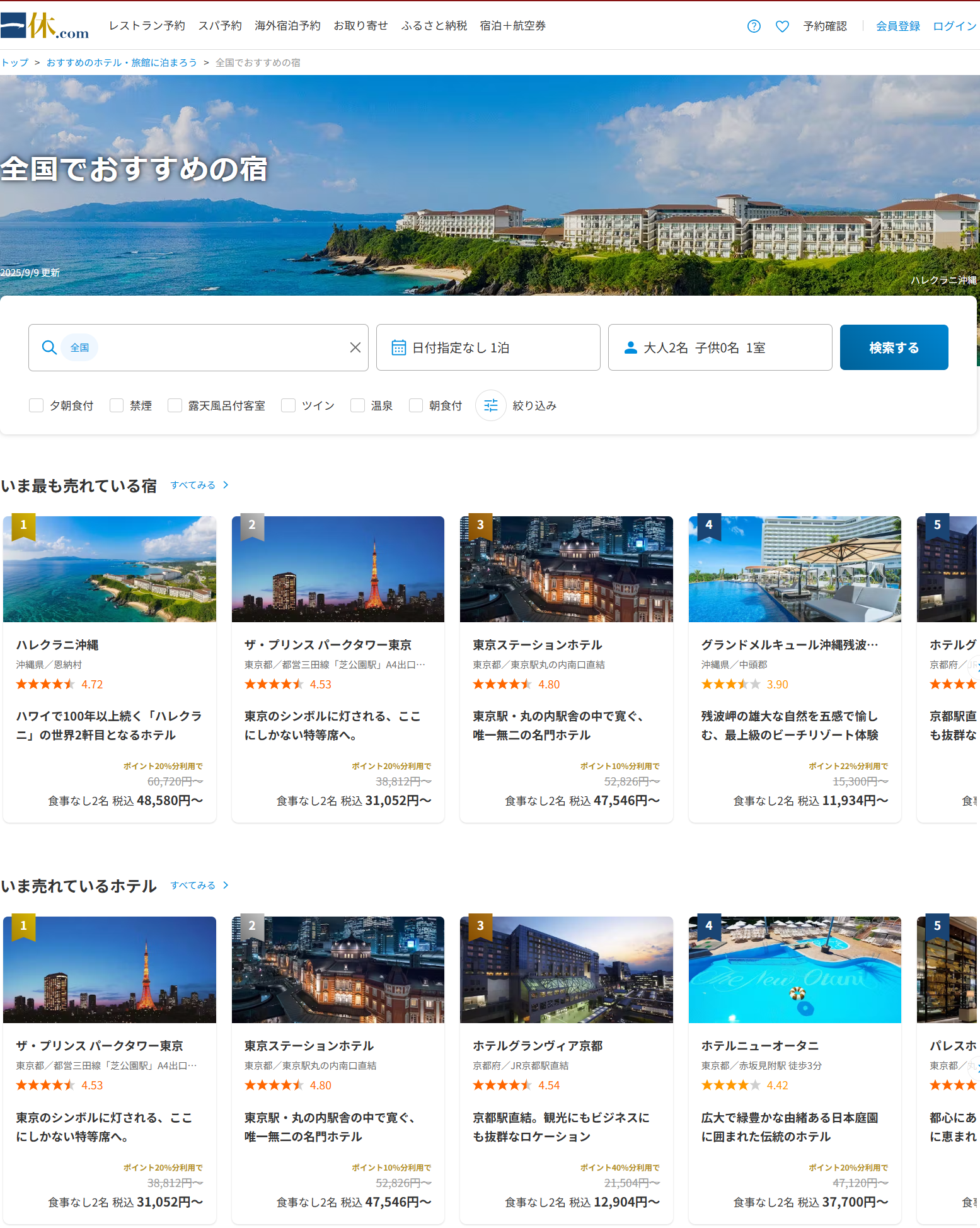 【PR】一休.com 詳細はこちらをクリック 今回ご紹介するのは、全国約9,700の高級ホテル・旅館、またワンランク上のビジネスホテルを 【タイムセール】や【限定】など充実のプランでお得に予約できるサイトです。各種セールをご活用いただくことで泊りたかったあの施設にお得にご宿泊いただけます。 また、ご家族様で利用されるならテーマパークエリアのホテルもおすすめです。ビジネスマンの方が空き時間にご利用しやすい【デイユース】プランも人気です。 出張や空き時間利用、リモートワークなどにおススメです♪ GWや夏休み、お正月休みの大型連休はもちろん3連休や通常の週末ももちろん、 今人気のテーマがわかる「テーマページ」もご用意されております。☆おすすめプラン☆プラン名:【1泊2食付】 DINNER PLAN|緑白湯と黒ごま麻辣の薬膳火鍋価格:夕朝食付大人2名税込 62,500円~ブラックとグリーンの薬膳スープに、厳選された新鮮な野菜や肉を贅沢に使用されています。薬膳効果で美容と健康をサポートする贅沢な2つの異なる風味を存分にお楽しみいただけますよ。人気の宿や旅館が取り揃えられておりました。おいしい食事に景色の良い宿で過ごす時間を想像すると予約段階でもワクワクしてきちゃいますね♬ご予約について、宿や旅館の詳細などは「詳細はこちら」ボタン、下記バナークリック(#^.^#) 商材名 一休.com運営者 M.M※当サイトはアフィリエイトプログラムを利用し宣伝目的で作成しております。