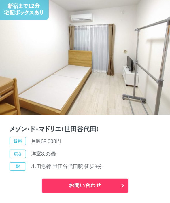 【PR】クロスワンルーム 今回紹介するのは、家具家電付きのワンルームをお安く紹介しているサイトです。おすすめのポイント💡初期費用・家賃が安く、TVや冷蔵庫、洗濯機、エアコンや電子レンジから、ベッド、机、椅子やカーテンなどの家具家電が備え付けだそうです。ワンルーム物件から家具家電付きシェアハウスも豊富に紹介されており、ワンルームからシェアハウスに移動する際は初期費用がかからず案内も可能だそうです。気軽に都内で引っ越しができちゃいますね(^^♪新入生や新卒の上京予定の方、都内で引っ越し検討中の方、とにかく初期費用や家具家電購入費用をおさえたい方、外国人の方にもぴったりです。来店不要でWEB申し込みが可能で、1ヵ月〜短期入居OKだそうです。お安く好立地での生活を楽しみませんか(^_-)-⭐気になる詳細は「詳細はこちら」ボタン、もしくは下記バナーをクリック👆 詳細はこちらをクリック おすすめ商品 メゾン・ド・マドリエ月額68,000円 【単身者向け】駅にも近く、お部屋も広めで、快適に過ごせますね!家具家電付きで、すぐに住めるのが魅力ですね(^^♪ ルーチェ西新宿月額83,000円 【2人入居可能物件!】新宿に徒歩圏内の位置にある物件です。2人での入居可能で、交通の便も良く、色々なところに出掛けやすいですね✨ おすすめ情報 商材名 クロスワンルーム運営者 M.M※当サイトはアフィリエイトプログラムを利用し宣伝目的で作成しております。