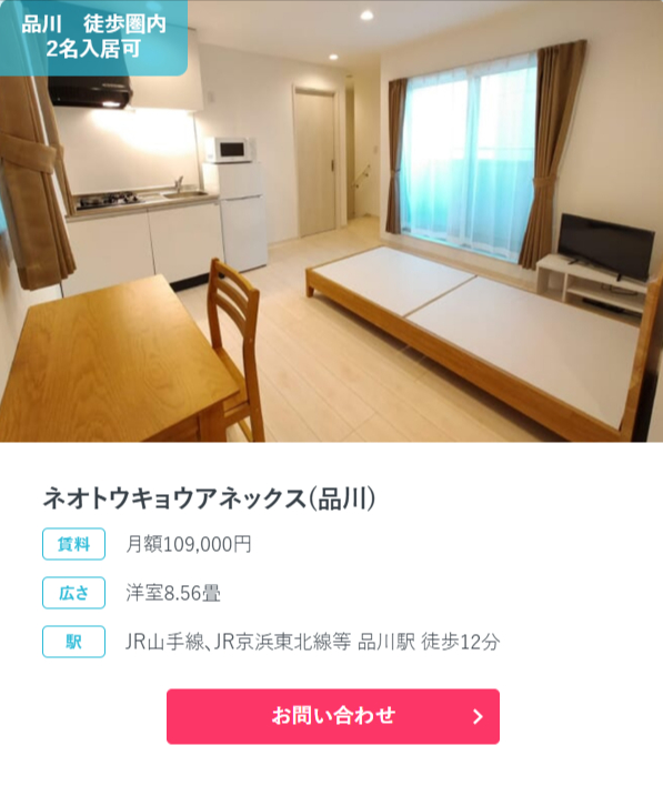 【PR】クロスワンルーム 今回紹介するのは、家具家電付きのワンルームをお安く紹介しているサイトです。おすすめのポイント💡初期費用・家賃が安く、TVや冷蔵庫、洗濯機、エアコンや電子レンジから、ベッド、机、椅子やカーテンなどの家具家電が備え付けだそうです。ワンルーム物件から家具家電付きシェアハウスも豊富に紹介されており、ワンルームからシェアハウスに移動する際は初期費用がかからず案内も可能だそうです。気軽に都内で引っ越しができちゃいますね(^^♪新入生や新卒の上京予定の方、都内で引っ越し検討中の方、とにかく初期費用や家具家電購入費用をおさえたい方、外国人の方にもぴったりです。来店不要でWEB申し込みが可能で、1ヵ月〜短期入居OKだそうです。お安く好立地での生活を楽しみませんか(^_-)-⭐気になる詳細は「詳細はこちら」ボタン、もしくは下記バナーをクリック👆 詳細はこちらをクリック おすすめ商品 メゾン・ド・マドリエ月額68,000円 【単身者向け】駅にも近く、お部屋も広めで、快適に過ごせますね!家具家電付きで、すぐに住めるのが魅力ですね(^^♪ ルーチェ西新宿月額83,000円 【2人入居可能物件!】新宿に徒歩圏内の位置にある物件です。2人での入居可能で、交通の便も良く、色々なところに出掛けやすいですね✨ ネオトウキョウアネックス(品川)月額109,000円 【東京都内も神奈川へも行きやすい】交通の便が良い駅近くの物件です。お部屋も広めで、家具家電付なのが嬉しいですよね(#^^#) おすすめ情報 商材名 クロスワンルーム運営者 M.M※当サイトはアフィリエイトプログラムを利用し宣伝目的で作成しております。
